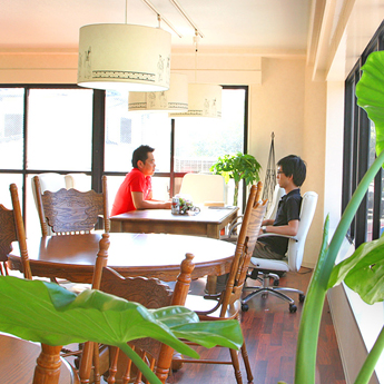 カフェみたいなオフィスにしたくて、開放的な空間を実現。