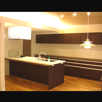 芦屋市内で夫婦と子供2人のためのマンションリノベーションです。 キッチンは、ご主人が奥さまのためにフルオーダーしました。 今回、水回りは傷みが少なかったので、改修しませんでしたが、ユニットバス壁面を一面鏡張りとすることで、少ない費用でデザインを一新しました。